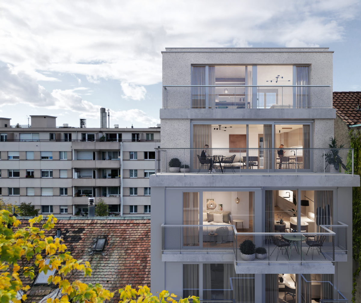 An der Vogesenstrasse 94 im Basler St. Johann entstehen sechs durchdachte CITY APARTMENTS – ruhig gelegen, architektonisch klar, hochwertig realisiert.